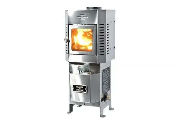 Ovn i rustfrittt stål produsert i canada. Liten og praktisk vedovn i rustfritt stål for skottmontering. Kan også leveres med varmesløyfe.